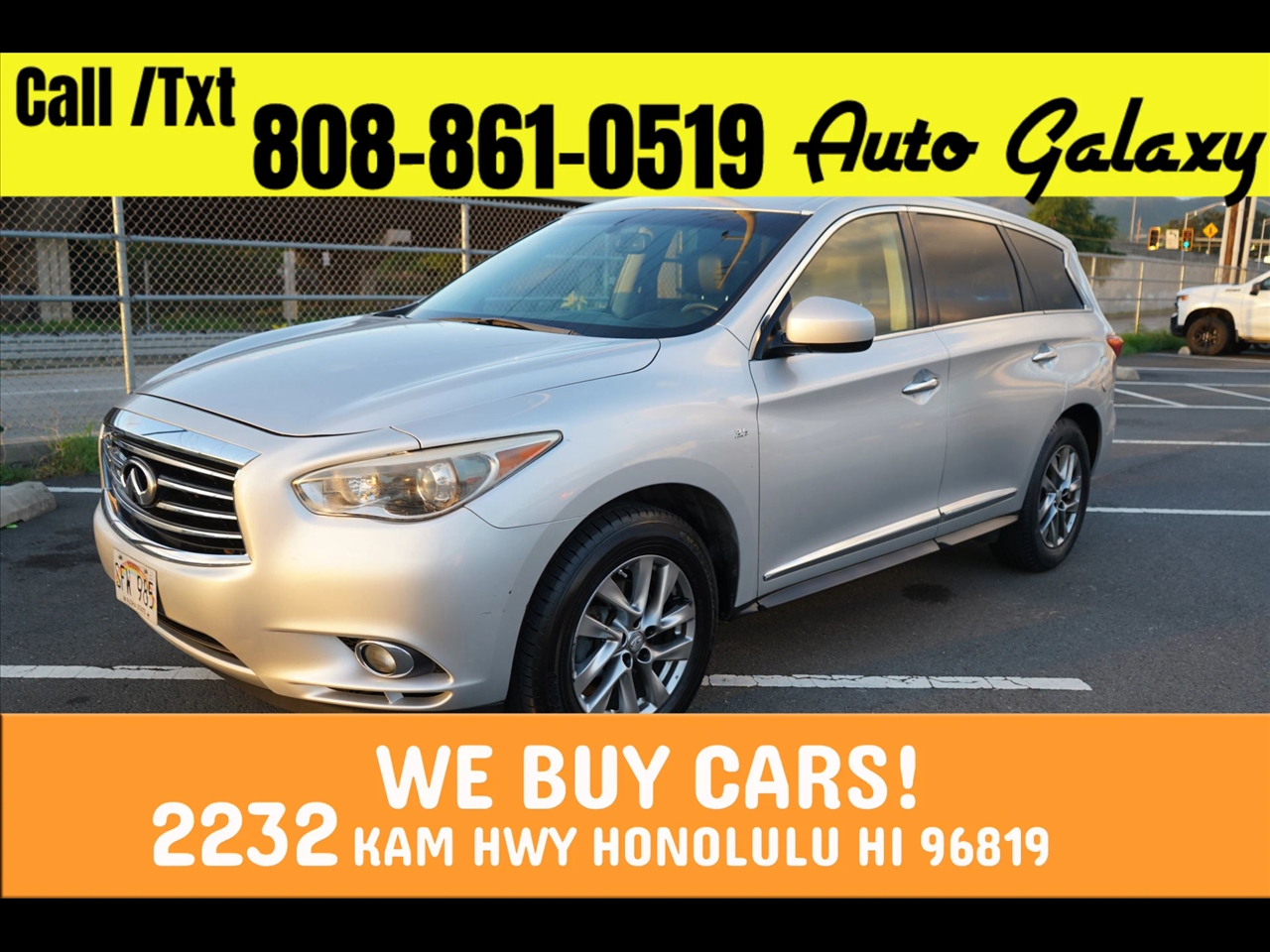 By checking this box I hereby consent to receive customer care text messages and/or phone calls from or on behalf of Auto Galaxy or their employees to the mobile phone number I provided above. By opting in, I understand that message and data rates may apply. This acknowledgement constitutes my written consent to receive text messages to my cell phone and phone calls, including communications sent using an auto-dialer or pre-recorded message. You may withdraw your consent at any time by texting "STOP" or "HELP" for help. See our https://autogalaxyhawaii.com/privacy for more information.